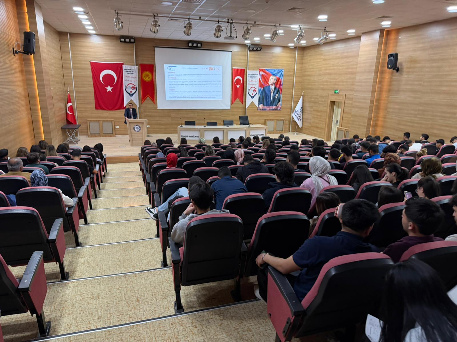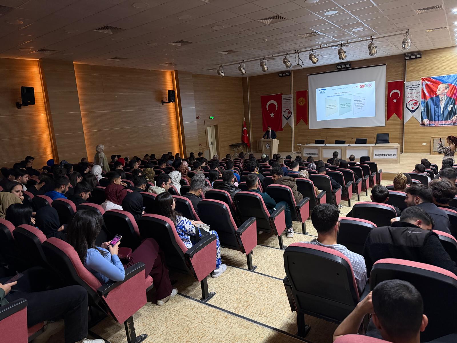 Gerçekleştirilen programa konuşmacı olarak katılan Sosyal Güvenlik İl Müdür Yardımcısı Mehmet KARAHAN ve Sosyal Güvenlik Merkezi Müdür V. Ömer BULUT, çalışma hayatına ilişkin temel bilgiler, sosyal güvenlik sisteminin önemi ve iş yaşamında dikkat edilmesi gereken hususlar ele alındı. Alanında uzman yetkililer tarafından yapılan sunumlarda, öğrencilerin mezuniyet sonrası karşılaşabilecekleri süreçlere dair bilgilendirmelerde bulunuldu.